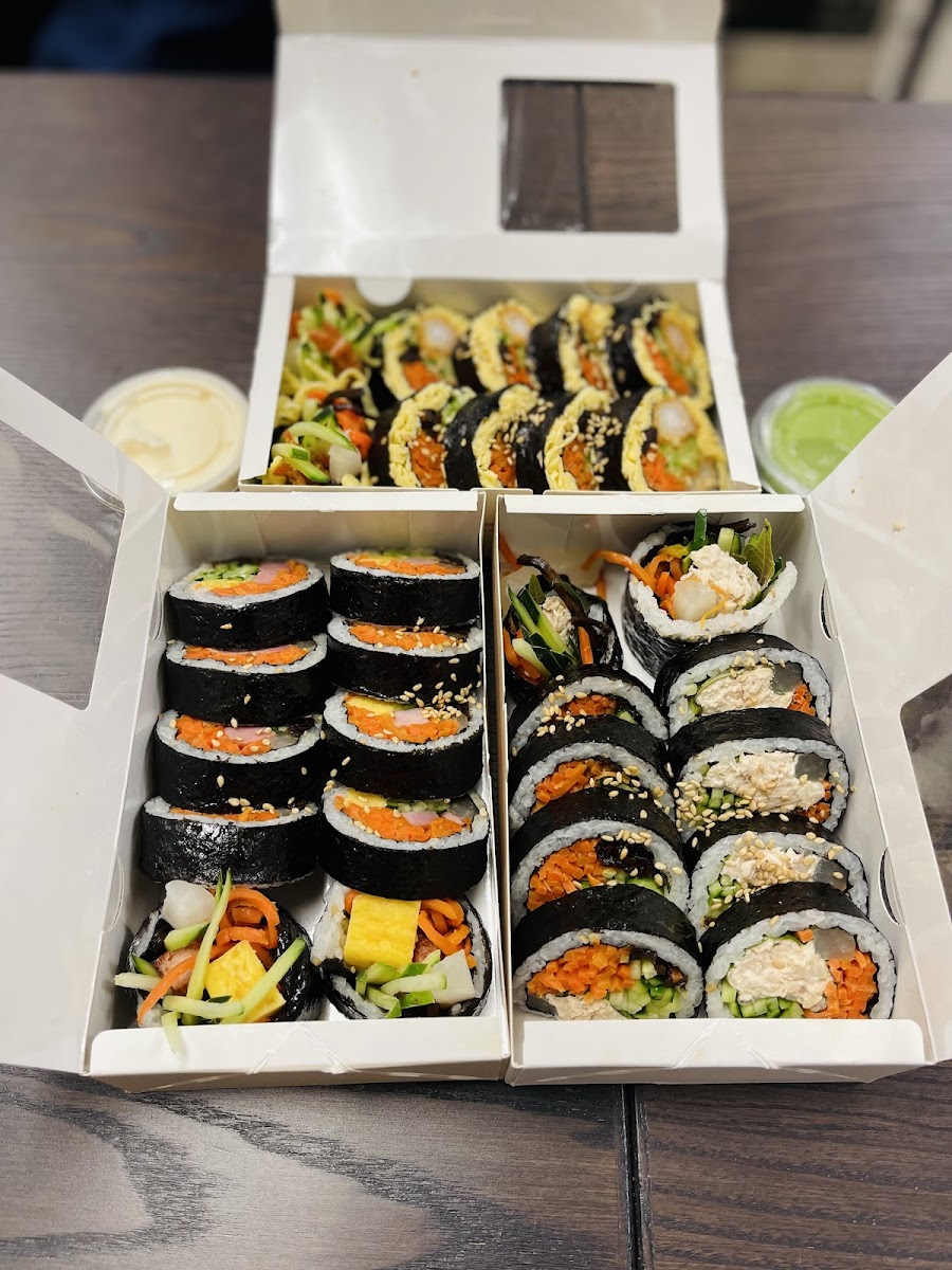 One of the standout dishes is the teacher's bento, which includes bulgogi, shrimp tempura gimbap, and a half order of soup tteokbokki. Packed with protein and banchan, this bento is a feast for the senses.